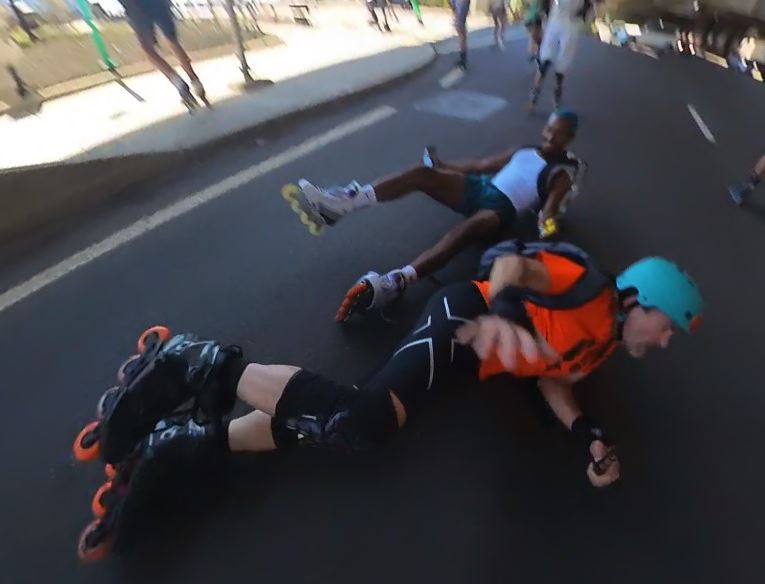 The second time was my last, until November, after being hit from behind by another skater during the SkateBoston LobsterRoll event, with a bimalleolar fracture as a result.